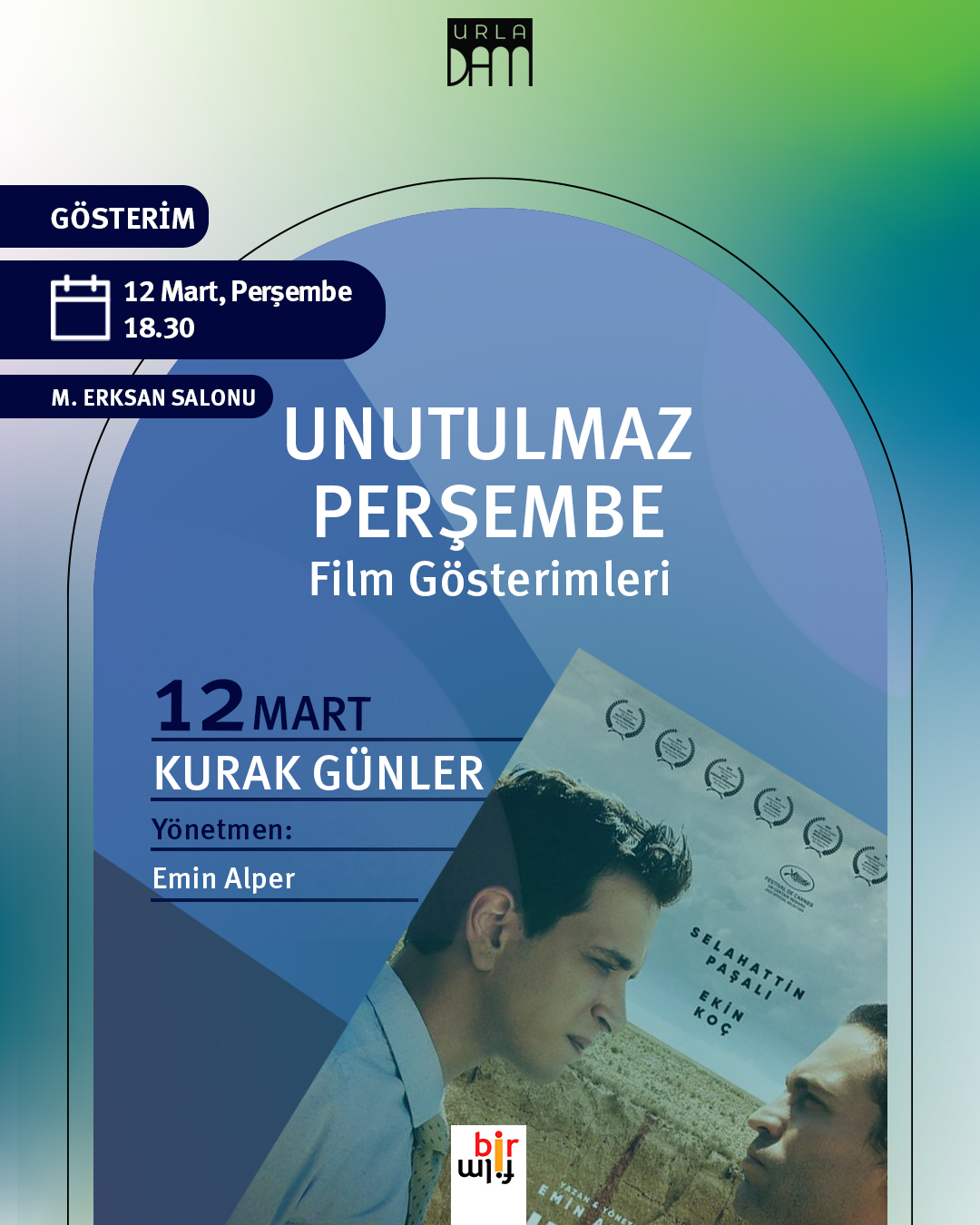 Perşembe akşamlarını sinemaya ayırıyoruz. Detaylı program ve katılım için: urladam.com.tr